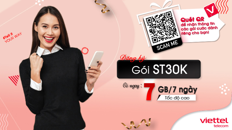 • Đăng ký gói st30k của Viettel qua shop.viettel.vn bằng cách bấm link sau tham khảo gói cước 4G Viettel dành cho thuê bao của riêng bạn.